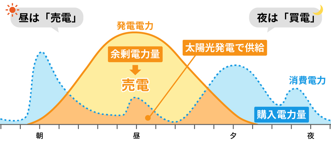 太陽光パネルを屋根に設置し、太陽の光を電気に変換して利用するシステム。日中に発電した電気は、家庭で使ったり、余った分を売電したりすることができます。