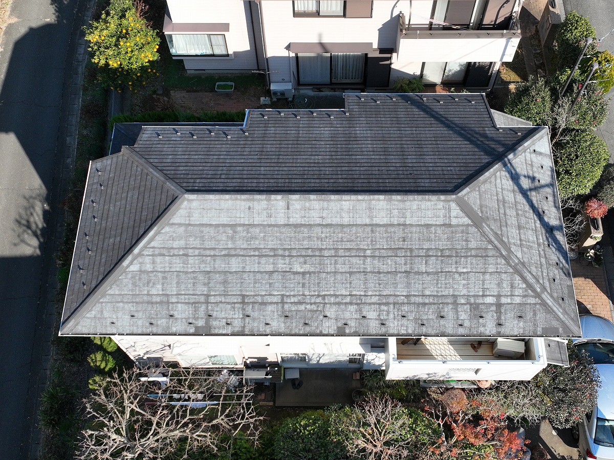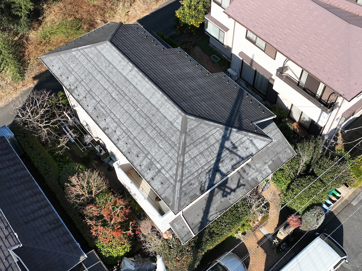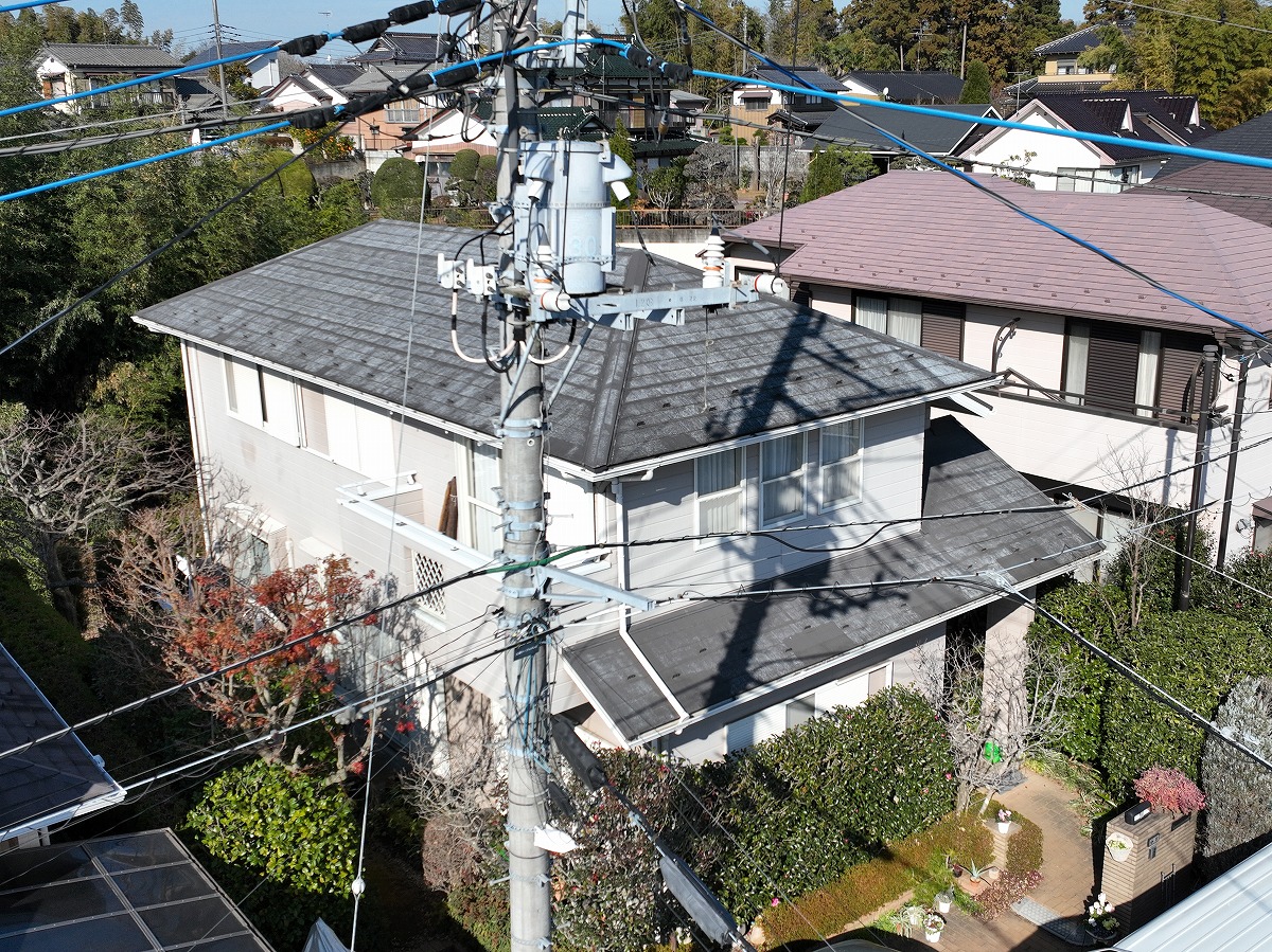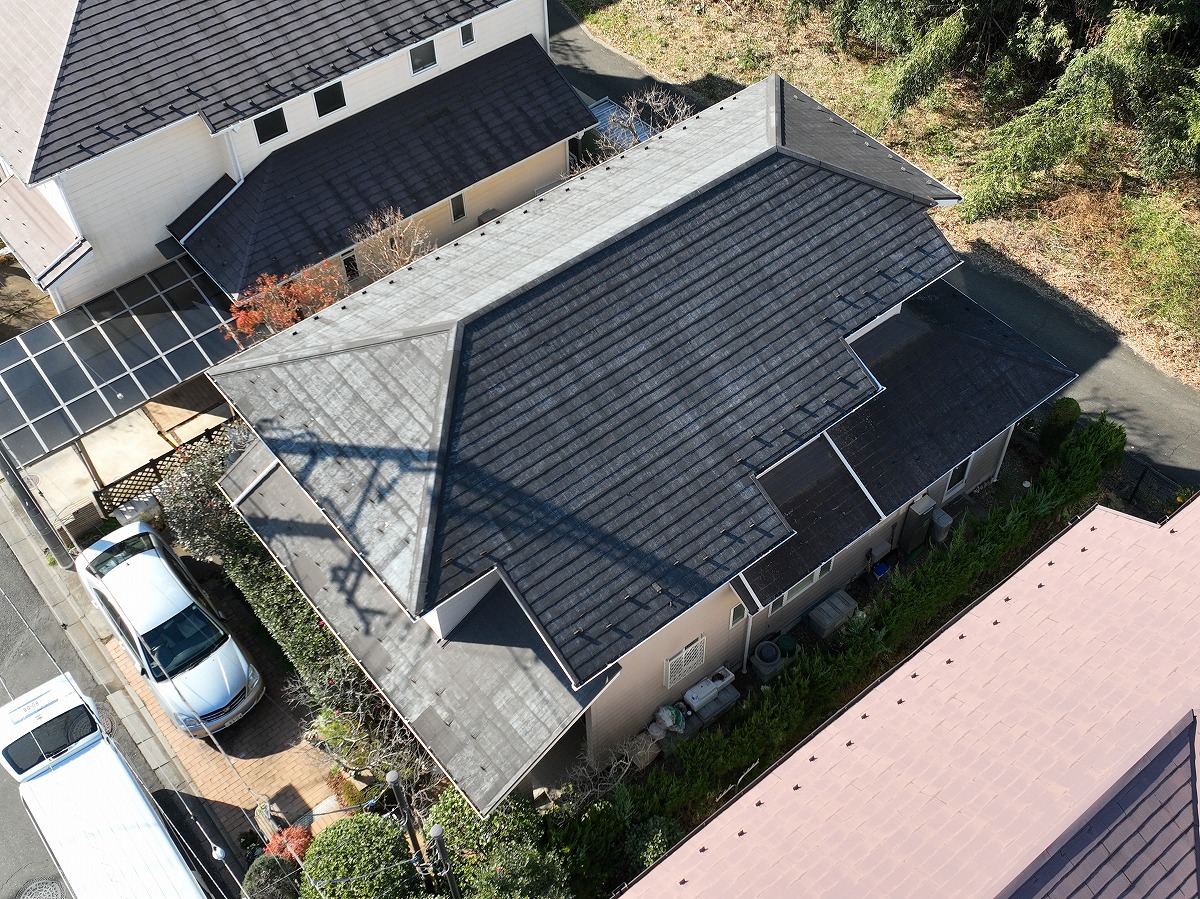 • 施工前 屋根葺き替えのドローン上空写真