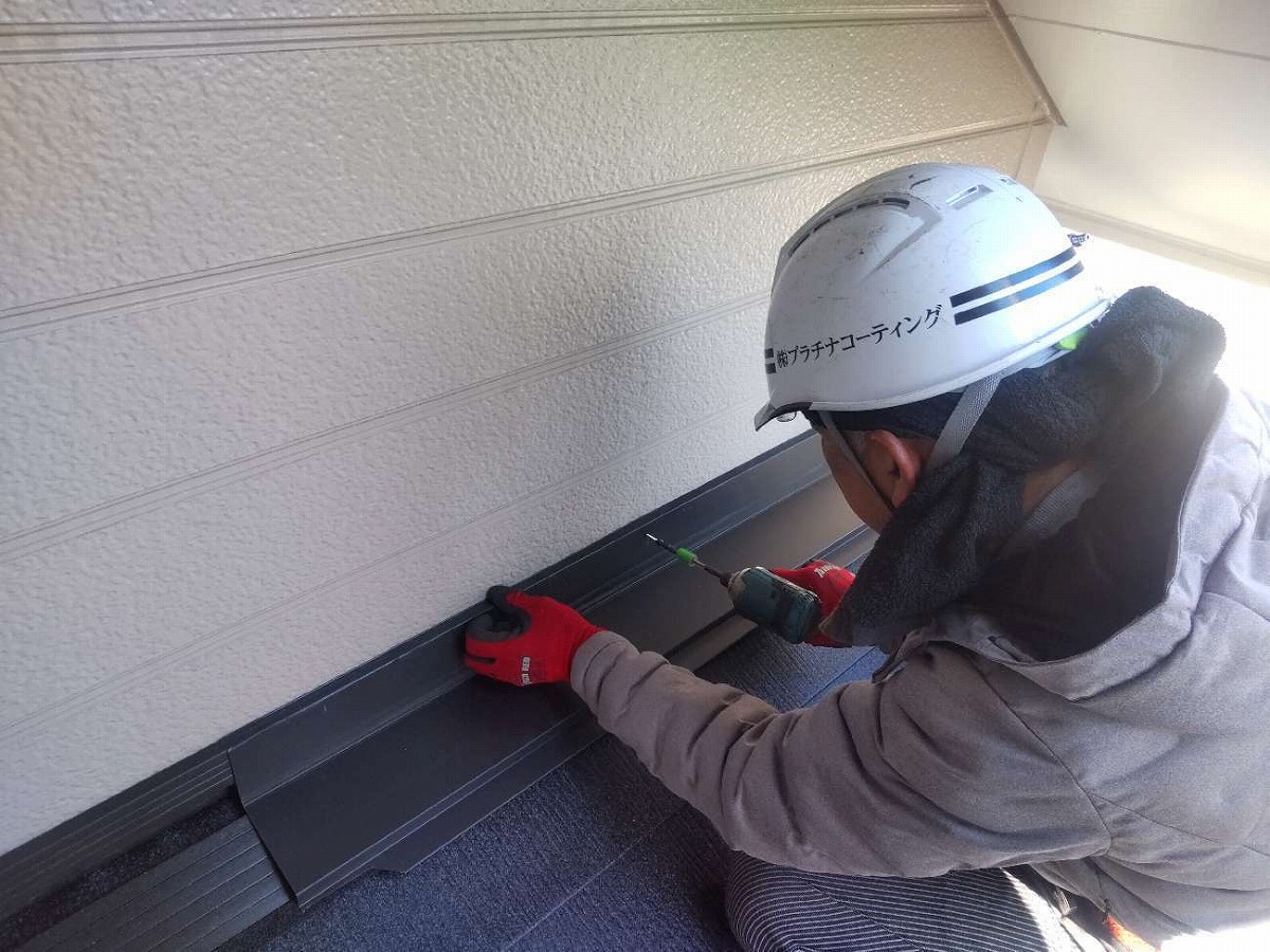• 雨押え水切り板金の取付け