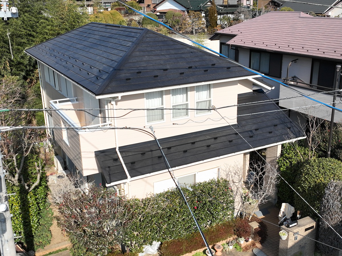• 施工後 屋根葺き替えのドローン上空写真