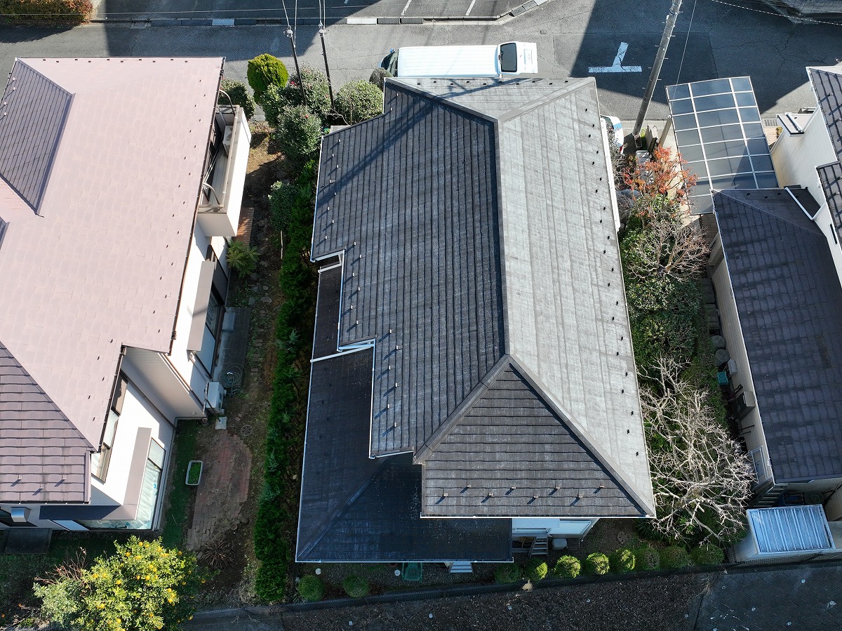 • 施工前 屋根葺き替えのドローン上空写真