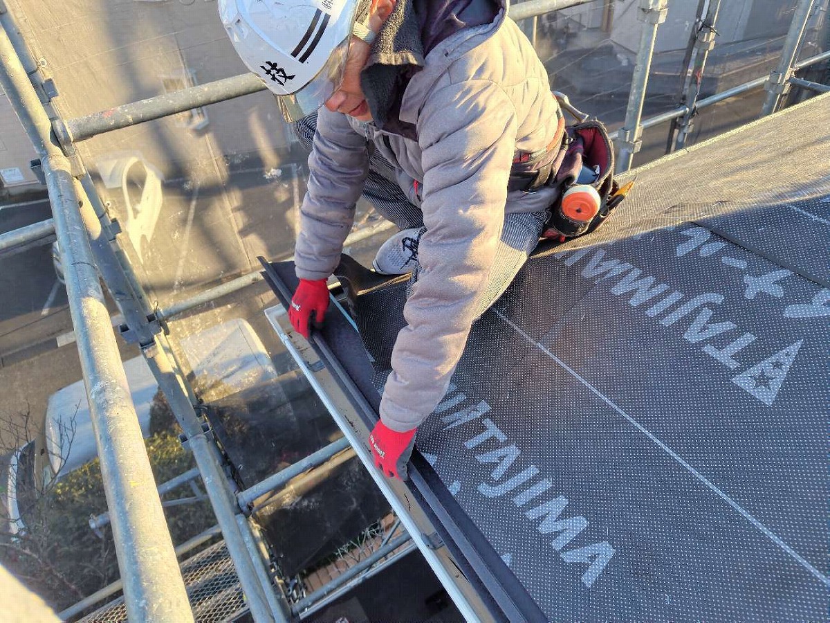 • 防水シートの張付け