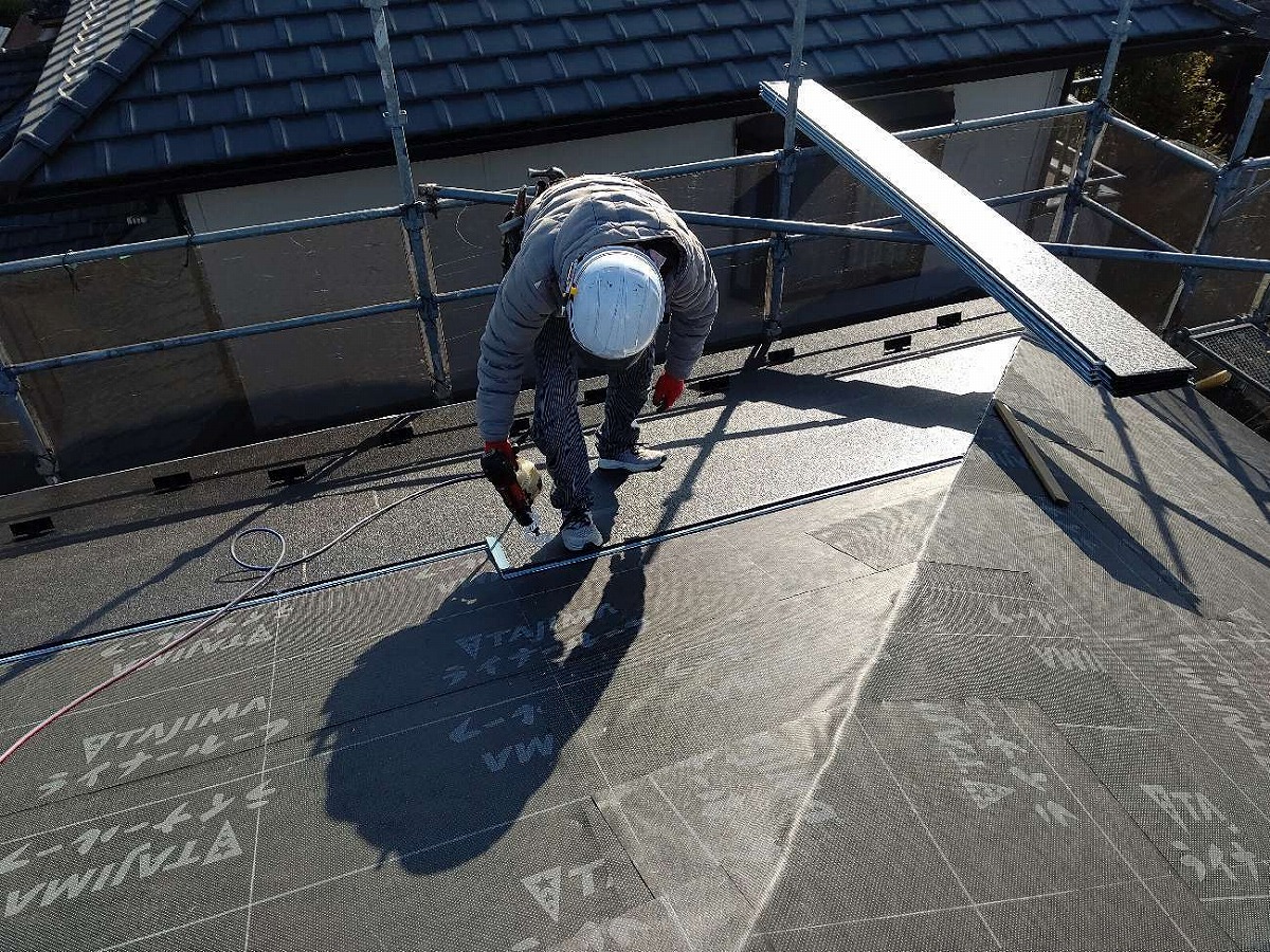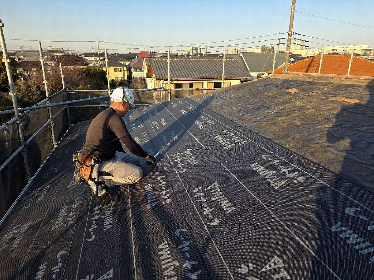 防水シートの張付け