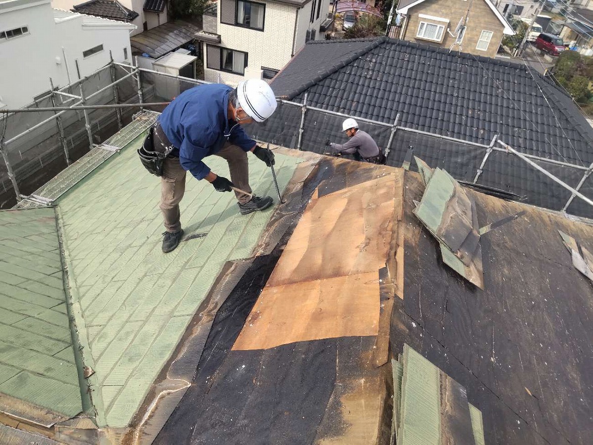 築30年経過した4度目の外装リフォームだったので、屋根の葺き替えをご提案いたしました。