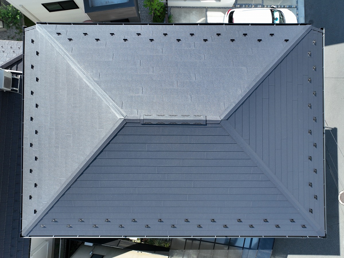 • 施工後 屋根葺き替えのドローン上空写真