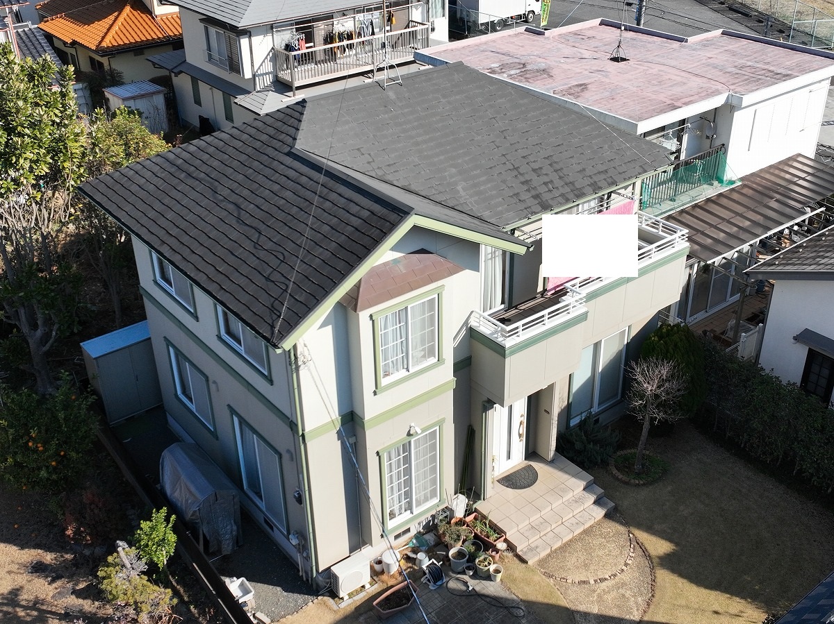 築21年経過した2度目の外装リフォームだったので、屋根の葺き替えと外壁の塗り替え、雨樋などの消耗品交換をセットでご提案いたしました。