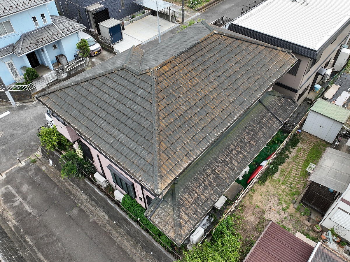 施工前 屋根葺き替えのドローン上空写真