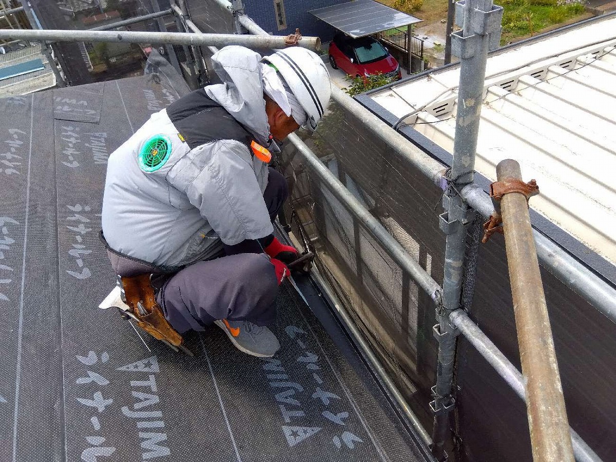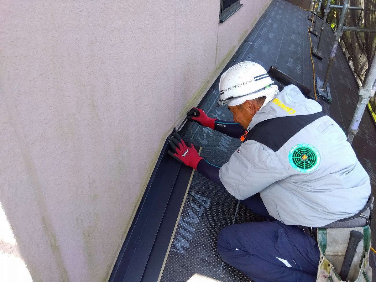 雨捨て板金の取付け