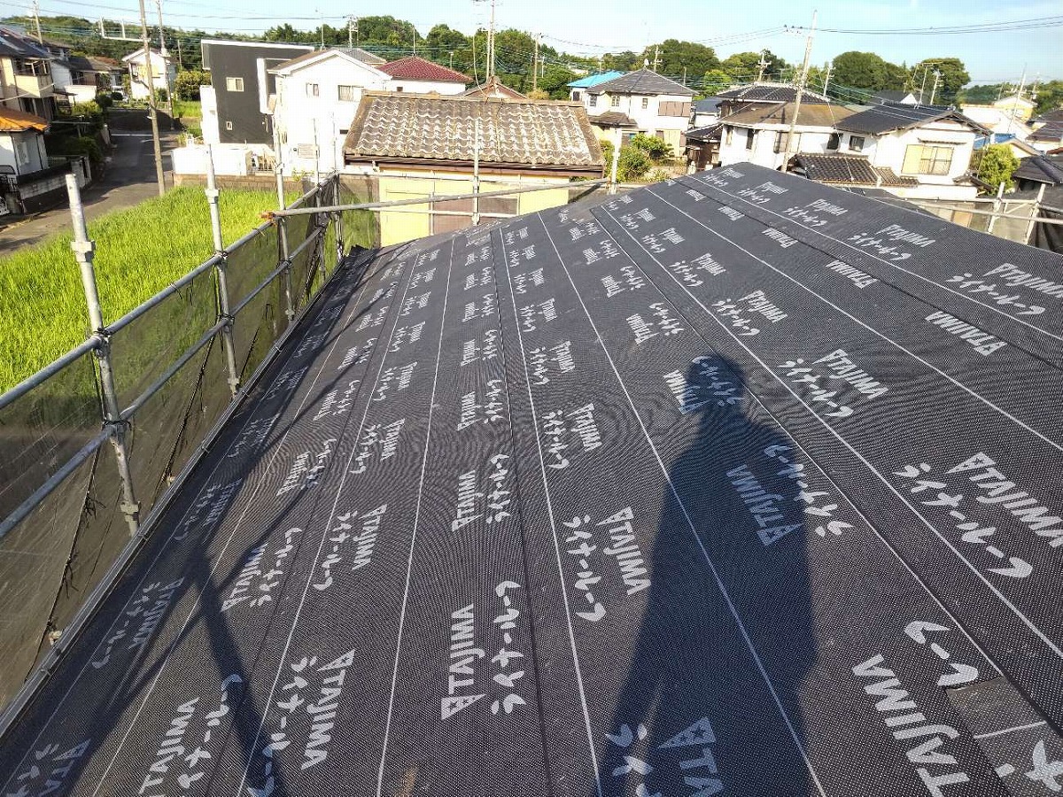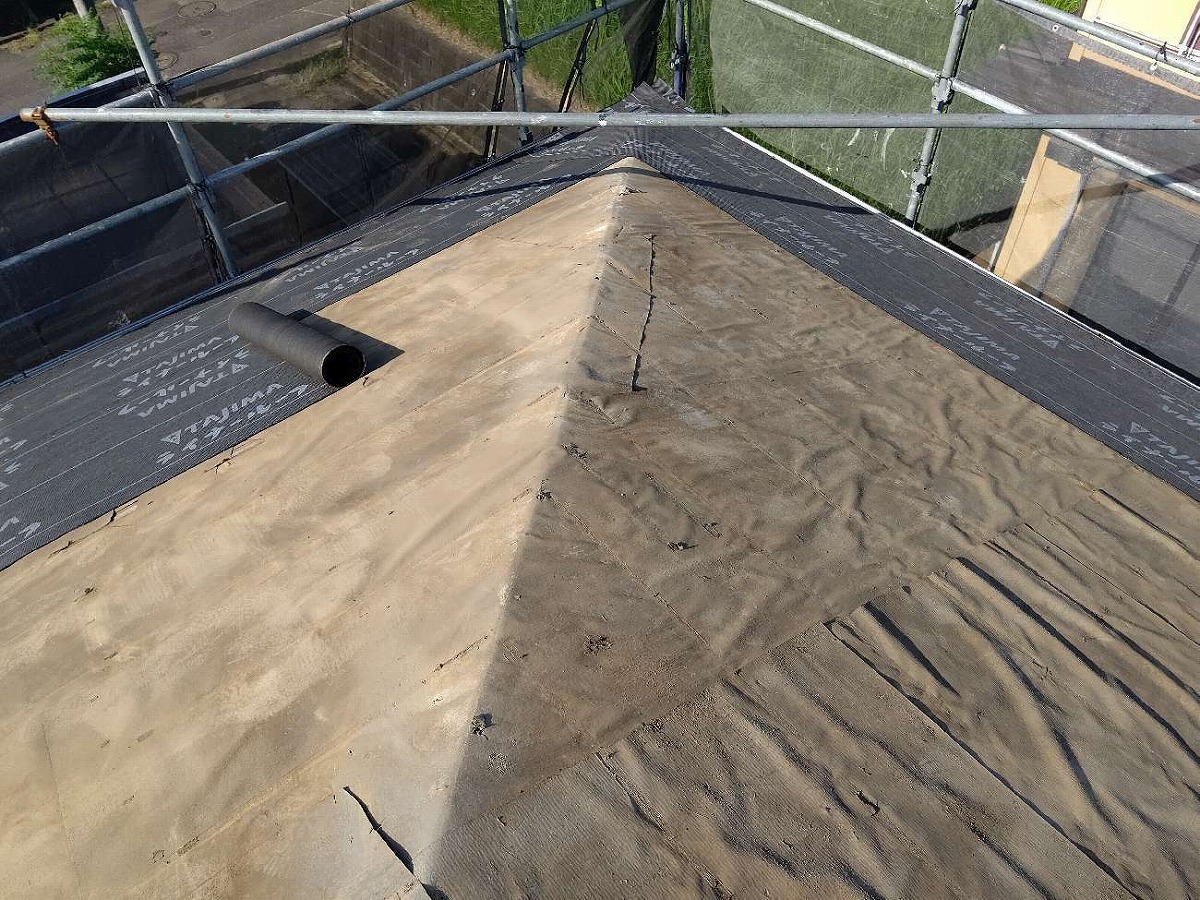 防水シート張付けの完了